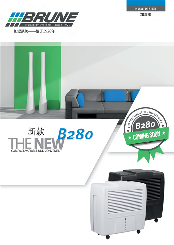 B280加湿器是BRUNE最新开发产品,由于采用了最新的光滤轮,虽然加大了蒸发面积,但是外观仍然精巧而别致。可调的排风口及上翘的控制面板使B280更具有了多变性,使用起来更便捷